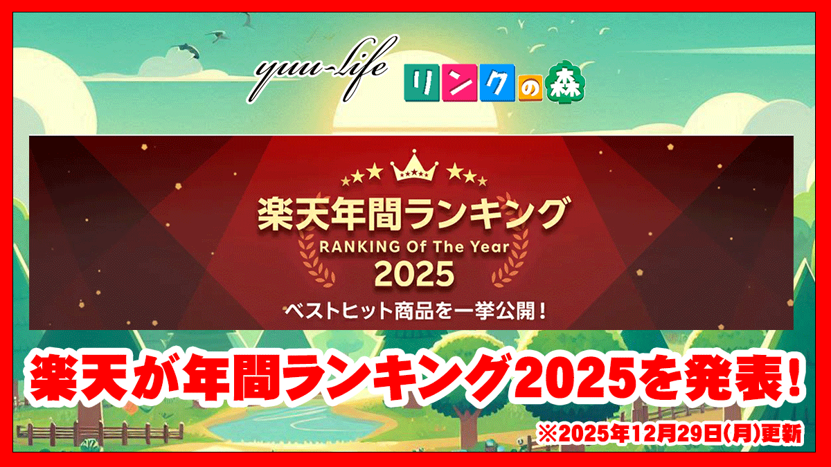 楽天が年間ランキング2025を発表! 🛒Yahoo!特集 2025.12.29 2025年12月29日(月)更新 楽天が楽天市場内の売上高、売上個数を元にランキング順位を発表しました。 今回は総合賞の1位~30位を紹介しようと思います。 目次 楽天年間ランキング2025総合賞第1位第2位第3位第4位第5位第6位第7位第8位第9位第10位第11位第12位第13位第14位第15位第16位第17位第18位第19位第20位第21位第22位第23位第24位第25位第26位第27位第28位第29位第30位 楽天年間ランキング2025総合賞 第1位 【楽天市場3億点以上のなかで2年連続最も売れた商品】[無塩]訳あり骨取りさば(選べる1kg・2kg) 第2位 楽天生活応援米【8月下旬~9月上旬までの発送予定】 第3位 【1種類を選べる】マミーポコパンツ オムツ ドラえもん M L BIG(3個)【マミーポコパンツ】 第4位 【1種類を選べる】パンパース オムツ さらさらケア パンツ(4個)【パンパース】[さらさらケア] 第5位 【シリカ100円OFFセール中!】炭酸水 500ml 48本 (24本×2ケース) 送料無料 第6位 【1種類を選べる】メリーズ エアスルー パンツ 梱販販売用(3袋入×1箱)【メリーズ 第7位 スキンクリア クレンズ オイル エコパック* (限定1種/通常4種) 【アテニア 公式】 第8位 「もっと」を仕込む裸眼系 カラコン ワンデー【もれなく1箱無料】 ReVIA 1day COLOR 1箱 10枚 入/3箱合計 30枚入り 送料無料 第9位 【1種類を選べる】グーン ぐんぐん吸収パンツ ディズニー・プリンセス おむつ(3個) 第10位 年内お届け12/30/14時まで★骨取りサバ切身 1kg 送料無料2,490円~ 無塩or有塩が選べる♪ 第11位 コンタクトレンズ ワンデー コンタクト 【2箱4箱】 まとめ売り【最安値に挑戦! 】 第12位 シード ワンデーピュア うるおいプラス 96枚入×2箱 第13位 【セット30日23:59マデ】【公式】Yunth 生ビタミンC 美白美容液 1ml×28包 第14位 【1種類を選べる】アタック 抗菌EX 洗濯洗剤 詰替 超特大サイズ 梱販売用(6袋入)【アタック】 第15位 【1/1~利用可 先着200円OFFクーポン配布中】【※2026年1月5日〜1月9日順次発送予定】エクエル パウチ 120粒 × 3袋【正規販売店】大塚製薬 第16位 【フレーバー・ラベルレス選べる】炭酸水 500ml 24本 送料無料 第17位 【限定カラー】【クーポン利用で20%OFF】エバーカラーワンデーナチュラル (1箱20枚入り) 第18位 【期間限定:3,980円→1,980円!】裏起毛 パンツ レディース 秋冬 ストレッチ ワイドパンツ 第19位 【公式】トーンアップUV 人気サンプルキット / ローズ+ / ホワイト / クリア [ 日焼け止め] 第20位 2025年一番売れたカニ/選べる カニ 福袋最大3kg!メガ盛元祖カット済生ずわい蟹 第21位 【レビュー特典あり】【訳アリ】公式 浄水器のブリタ 交換用カートリッジ マクストラプロ ピュアパフォーマンス 8個セット 第22位 アルティム8∞ クレンジング オイル ベストセラーキット クレンジングオイル 洗顔 メイク落とし 第23位 スキンクリア クレンズ オイル (レギュラーボトル) (限定1種/通常4種) 【アテニア 公式】 第24位 ★3箱で1箱タダ★5,970円OFFクーポンで総重量3kg送料無料11,940円!カット生ずわい蟹700g/総重量1kg 第25位 【年末年始も発送】本日終了\P4倍/ ナイトブラ 育乳 ブラジャー 育乳ブラ ノンワイヤー ブラ 第26位 茨城県産 紅はるか 干し芋 訳あり 1kg ギフト 送料無料 干しいも 国産 無添加 切り落とし 第27位 【豪華賞品が当たる!】水 天然水 500ml 48本 ラベルレス 備蓄水 お茶 緑茶 ミネラルウォーター 富士山の天然水 第28位 【1種類を選べる】ムーニーマン パンツ 男女 L・BIGサイズ 大容量(4袋セット)【ムーニーマン】 第29位 アキュビューオアシス ×2箱セット コンタクトレンズ 2week コンタクト 2ウィーク 2週間使い捨て 第30位 【1種類を選べる】パンパース オムツ はじめての肌へのいちばん テープ(3個) いかがだったでしょうか?気になる商品はありましたか? 楽天公式では総合賞の他に、ジャンル別賞・特別賞など掲載されているので、気になる方はこちらの公式より確認してみてください。 ↓ ↓ ↓ \ 最新情報をチェック / Bluesky